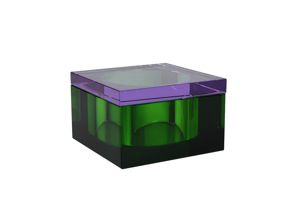 Worship the beauty of our Indigo Burano Crystal Accessories range. A beautiful cut crystal box composed of a green crystal base and a lavender colour lid. Use it as a trinket box on your bedside table, or as amenity box to store personal items. |Available in 2 colours. Packed with Black Indigo Gift box makes it ideal for gifting.