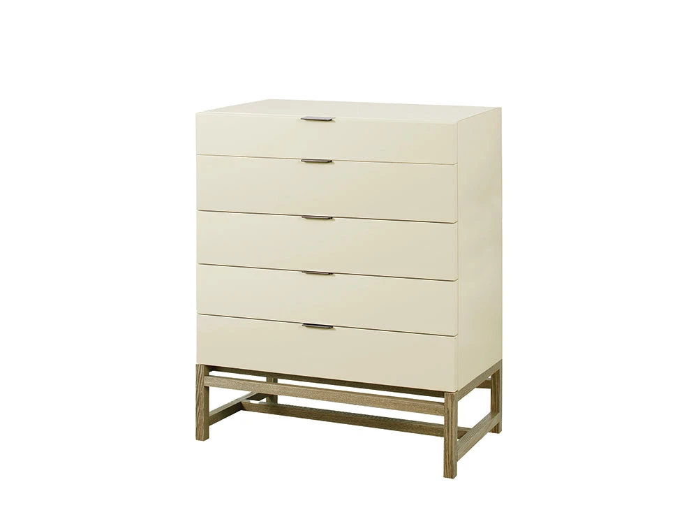 The Capri Chest of Drawers features a neutral matte sateen finish, that will work perfectly in any bedroom or closet. The piece is designed to store you clothes and accessories with subtle sophistication, due to the natural ash grain detailing inside and out.