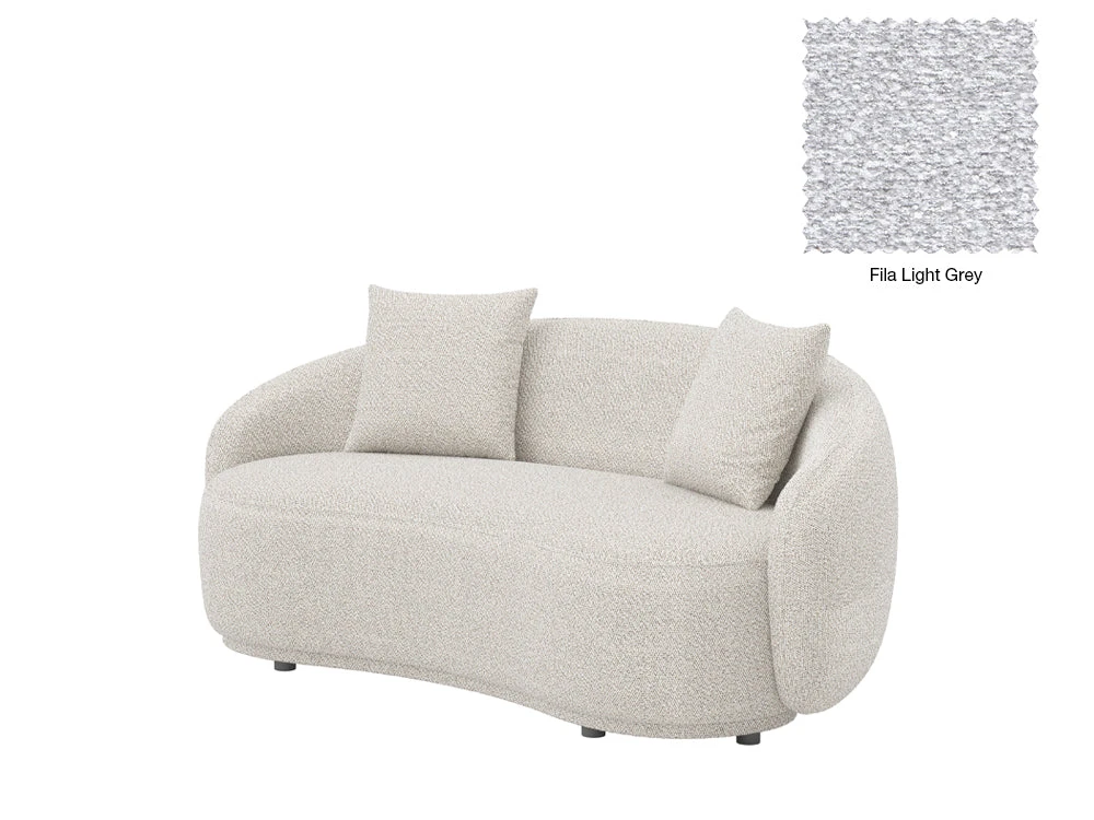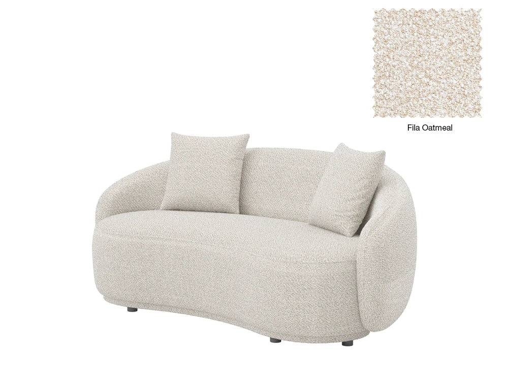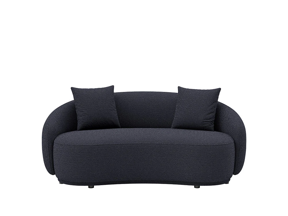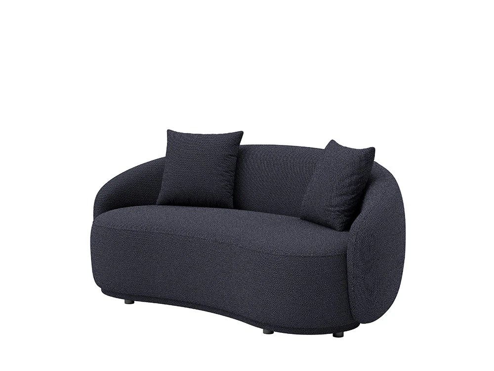 Dawn Sofa Range features curves and sumptuous upholstery. The curvaceous form makes it a simple yet unconventional centerpiece in a living space. Show here in Kuka textured Fabric, shown here in Black Iris a rich dark Navy tone, for that dramatic statement Sofa look.