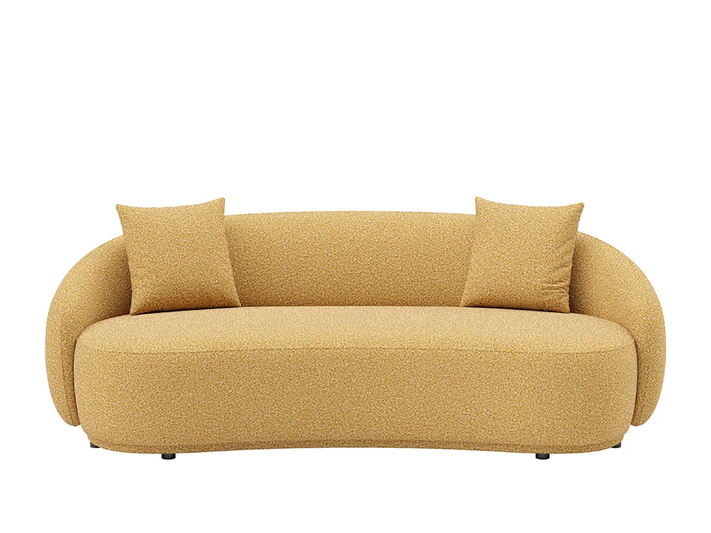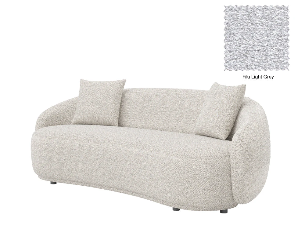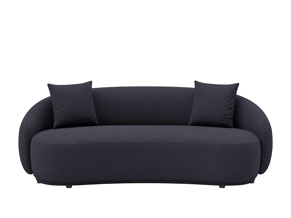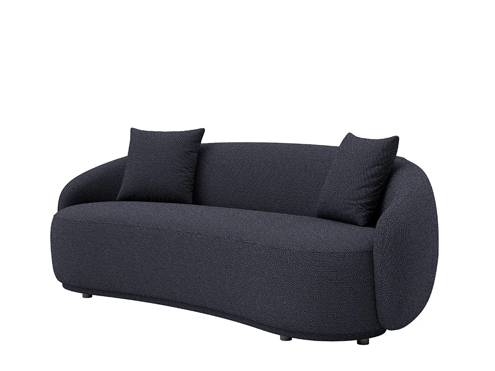 Dawn Sofa Range features curves and sumptuous upholstery. The curvaceous form makes it a simple yet unconventional centerpiece in a living space. Show here in Kuka textured Fabric, shown here in Black Iris a rich dark Navy tone, for that dramatic statement Sofa look.