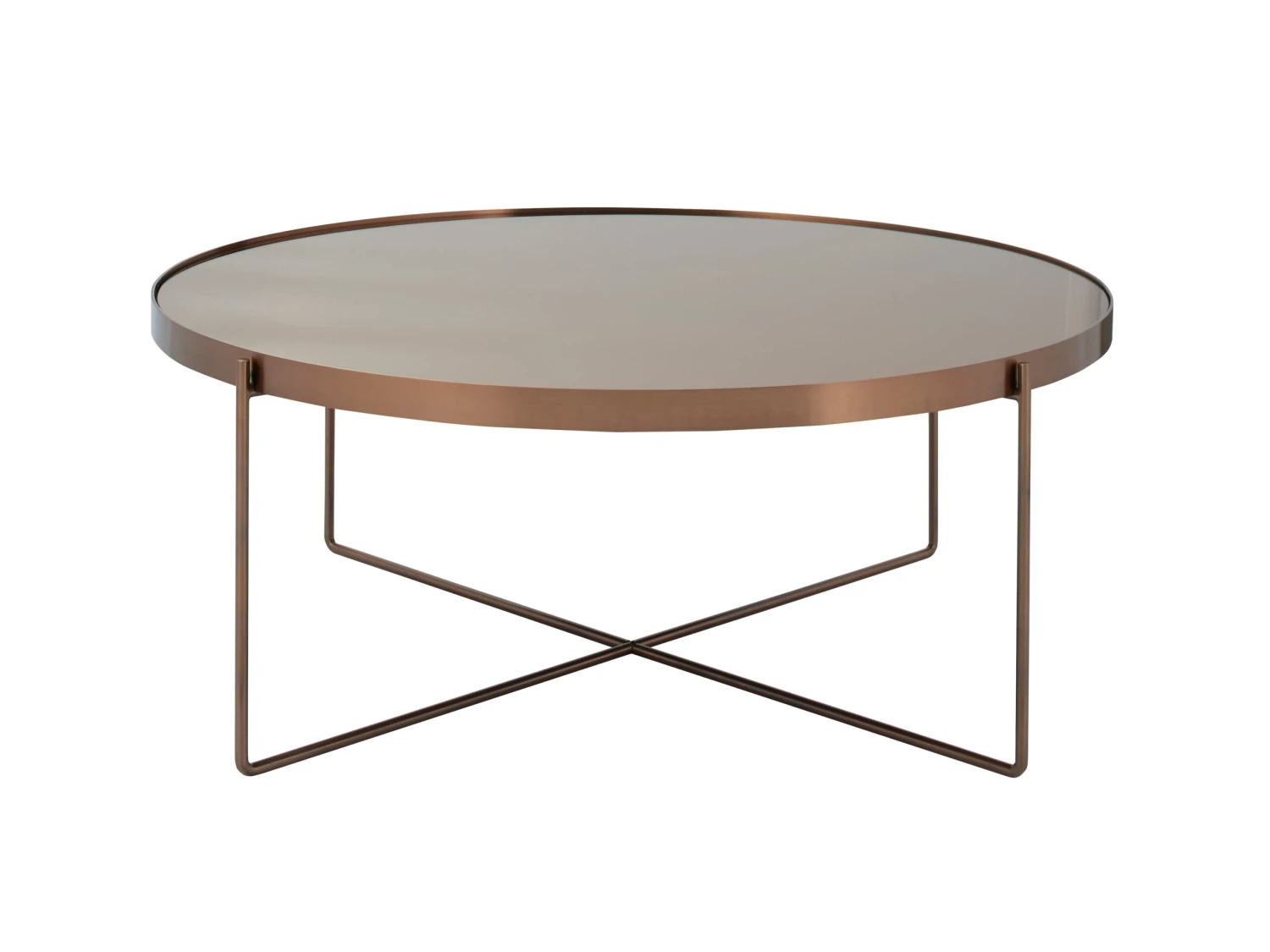 The Large Felix Coffee Table is all about shine and glamour. Its rose gold frame is elevated further with the rose gold tinted mirror glass top. The result is a non apologetic center piece that fits into almost any space due to the round shape and low profile. The Felix Collection is also available in a small coffee table and a side table, which can nest together perfectly if desired.