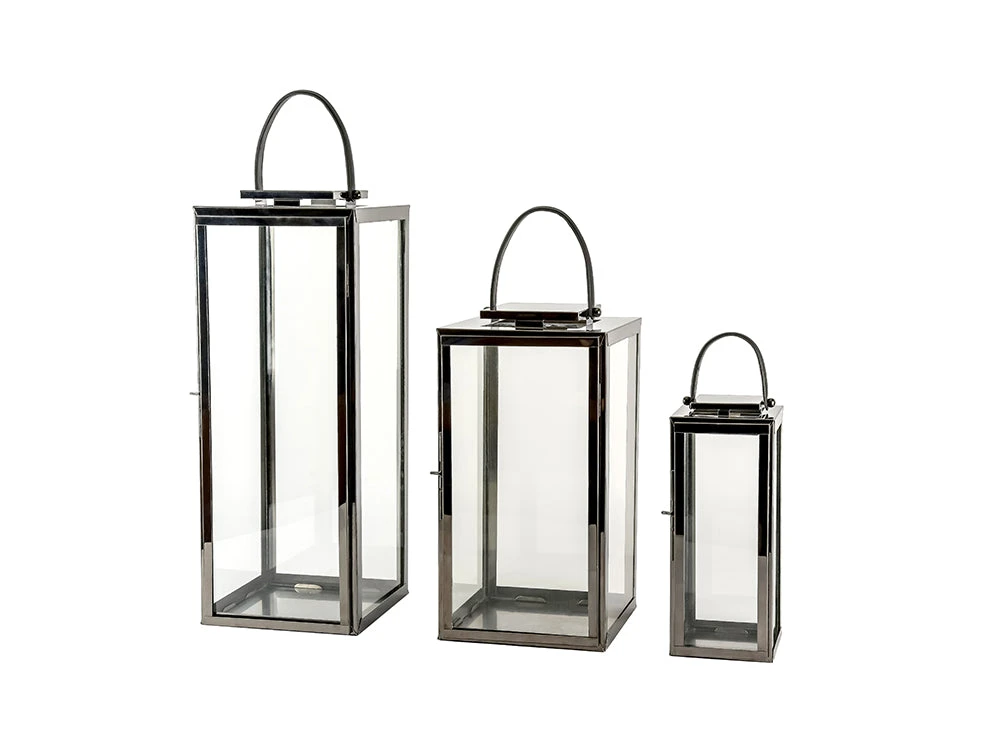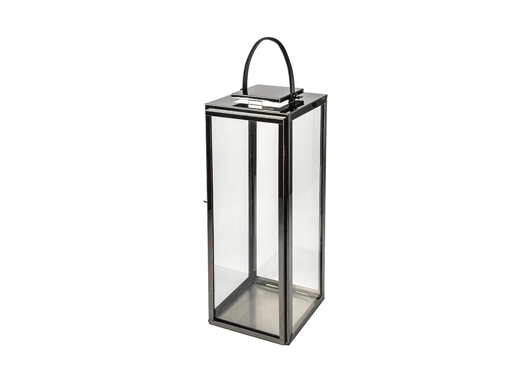 Contemporary and intensely elegant the Nox Lantern features a dark nickel finish trimmed with a black leather handle. The overall effect is that of mystery style and a wow factor to impress all.
