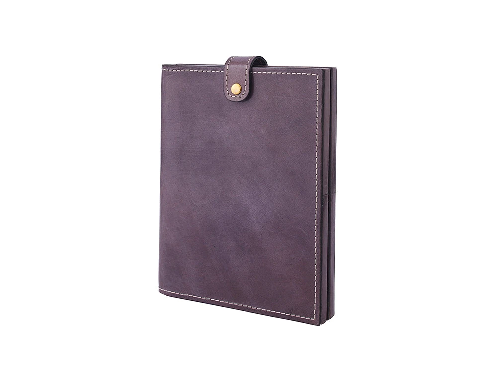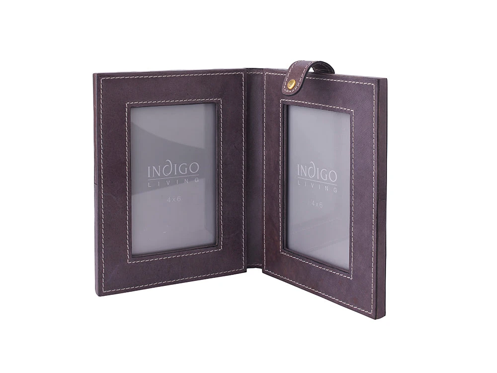 A classic double frame booklet with contrast stitching and snap button closure, is perfect for travel or gifting.