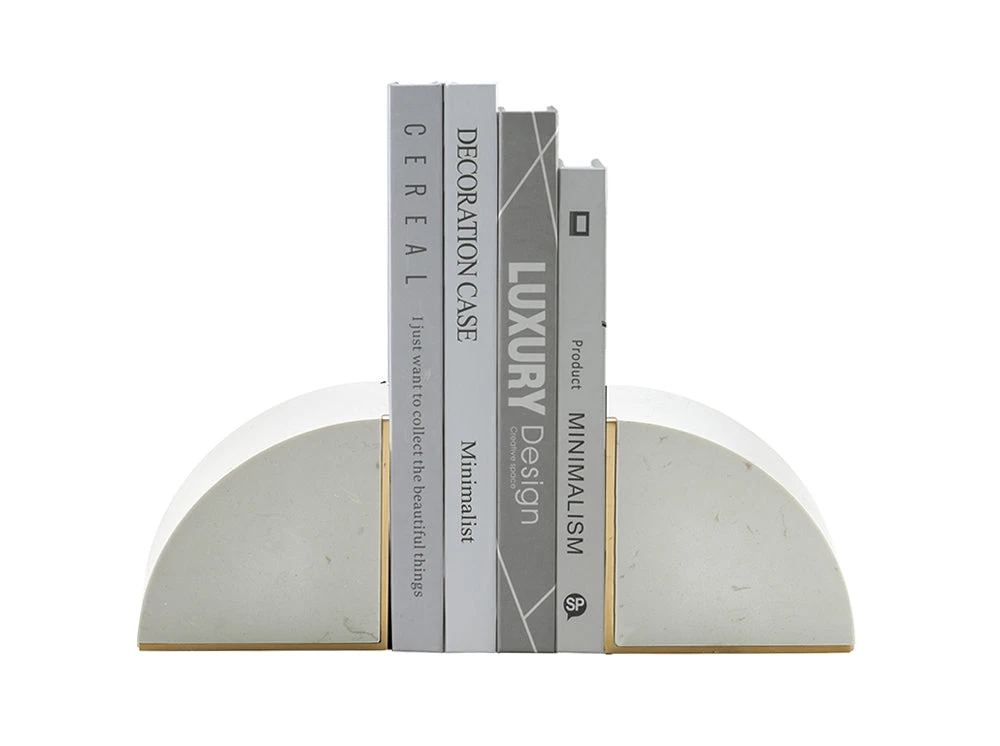 The Brass Inlay Slice Marble Bookends are a detailed pair of stone blocks that feature a sleek yet effective brass inlay adorning their angle edges. These on trend white marble bookends will not only adorn your bookshelf with style, but also work well to add weight to a console or entrance table.
