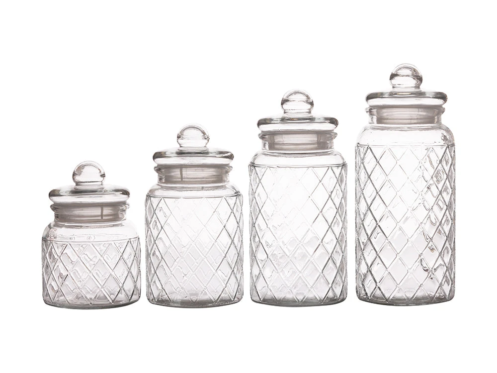 Handmade using superior glass for lasting quality and craftsmanship. Silicone seal around the lid to ensure a tighter closure. Textured glass in a trellis pattern for a sense of vintage design in your kitchen style. Gives classic look when fill with boiled lollies or toffees. Ideal for storing coffee, tea, sugar and other pantry items.